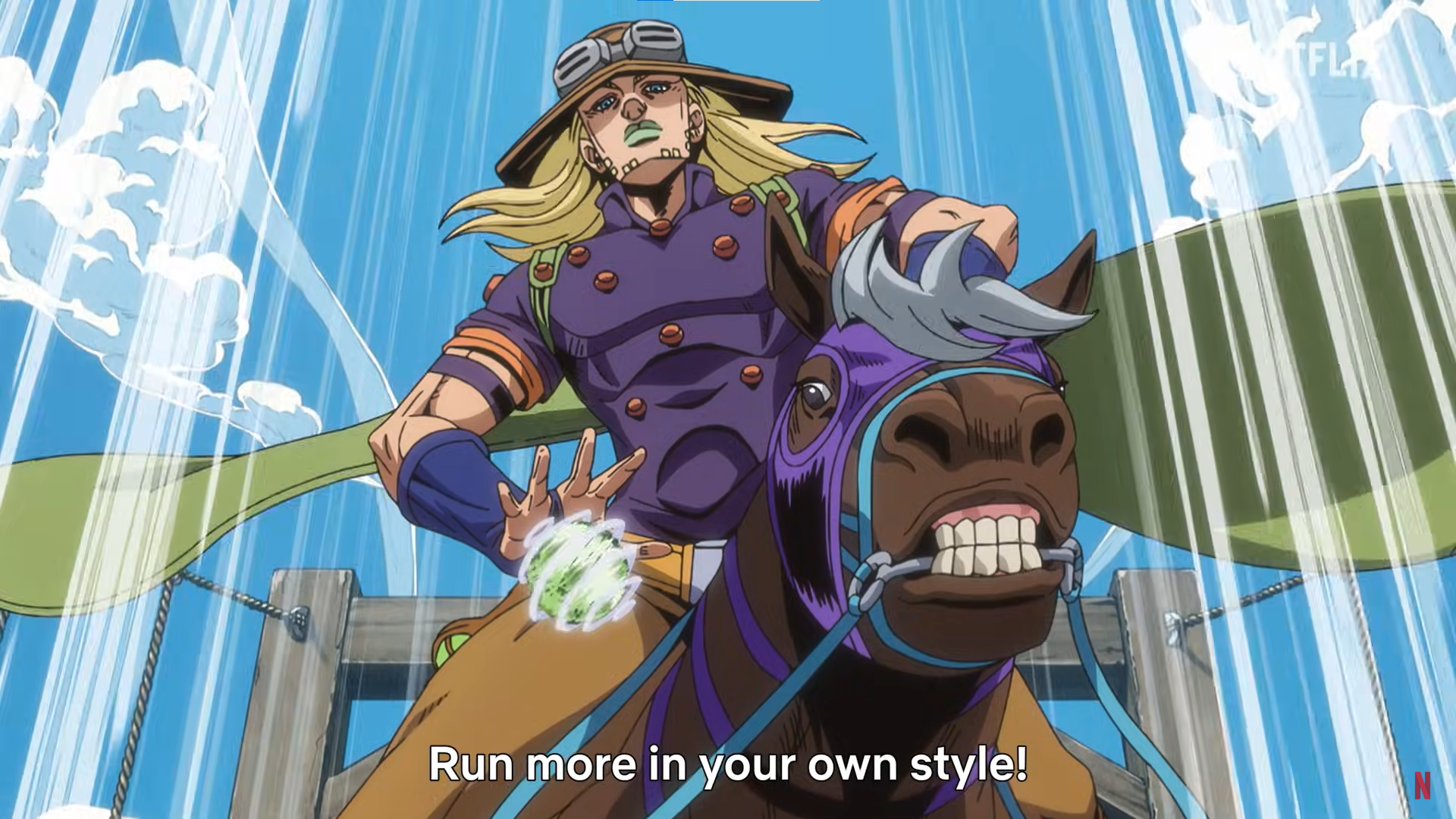 Дикий Запад. Город Сан-Диего. «Стальной Шар» - именно так называется величайший в мире заезд, из-за которого тысячи наездников прибыли в штат Калифорния. Именно отсюда начинается маршрут гонки длиной шесть тысяч километров и суперпризом в пятьдесят миллионов долларов. Новые правила гонки гласят: участники могут передвигать на людом виде транспорта и пользоваться оружием. Сюда приехал и Джонни Джостар, когда-то являющийся богачом и великолепным наездником. Но недавно Джонни получил серьёзное ранение, теперь его ноги парализованы, деньги утекли, а друзья отвернулись от бедняги. Здесь Джостар знакомится с ярким харизматичным Джайро Цеппели, оружие которого – странные шары из металла, прикоснувшись к которым, Джонни впервые после несчастного случая мог встать на ноги. Поняв, что в шарах кроется его выздоровление, герой принимает решение об участии в величайшей гонке США.